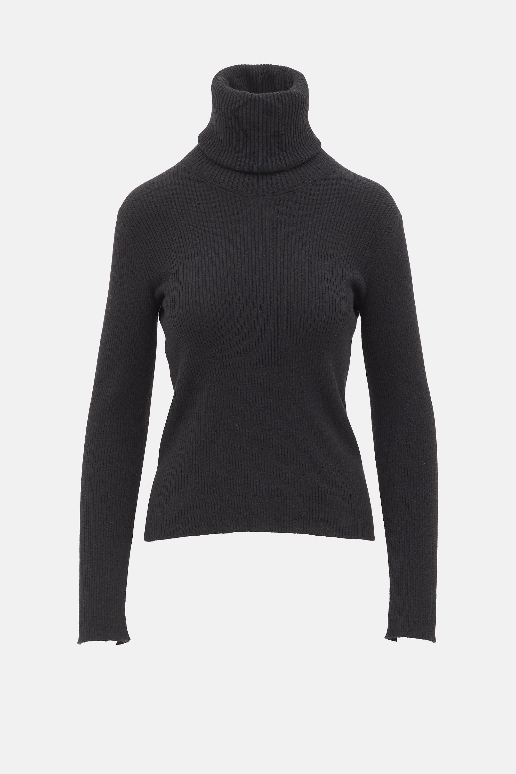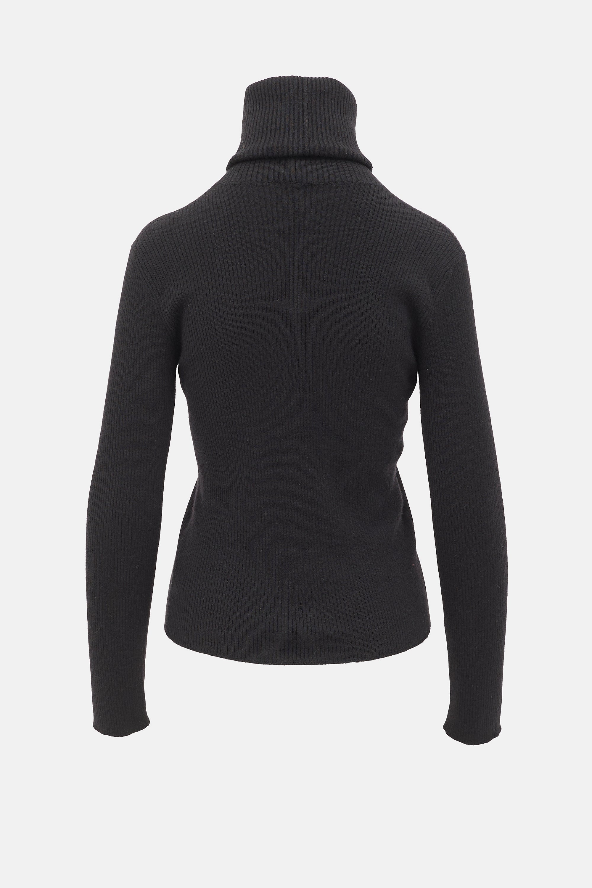 Pre-owned Giorgio Armani black cashmere ribbed sweater featuring a rolled over turtleneck and fitted silhouette.