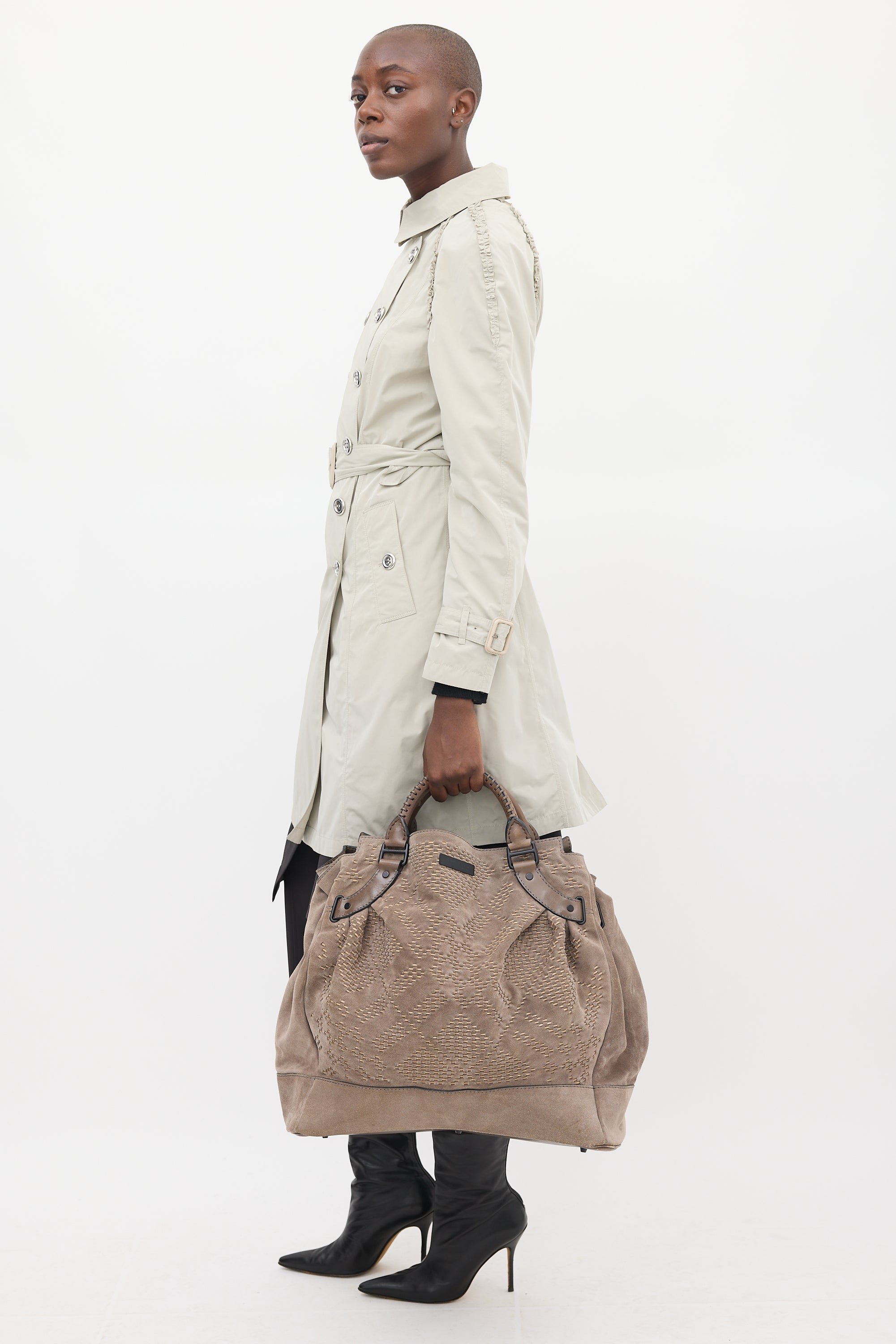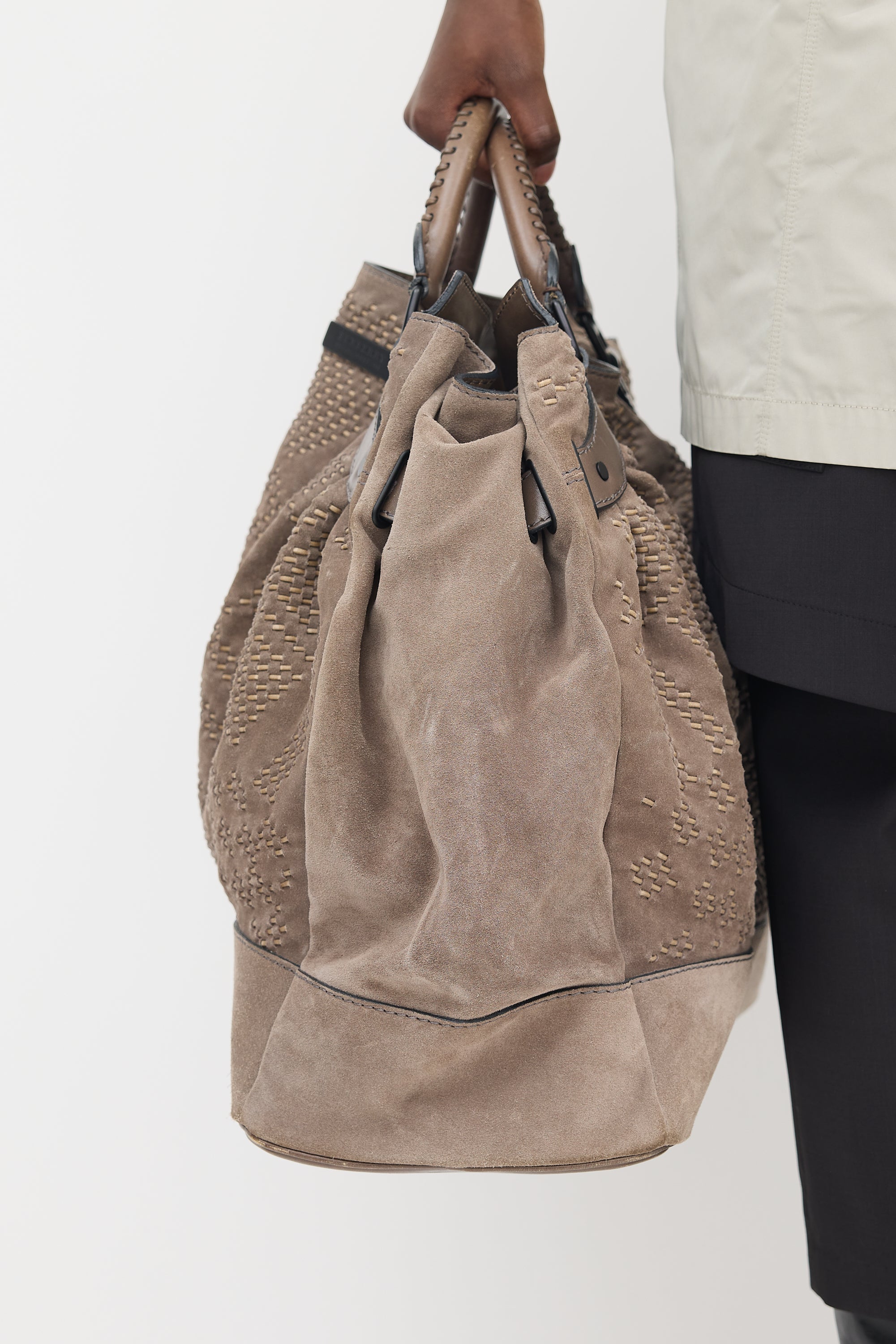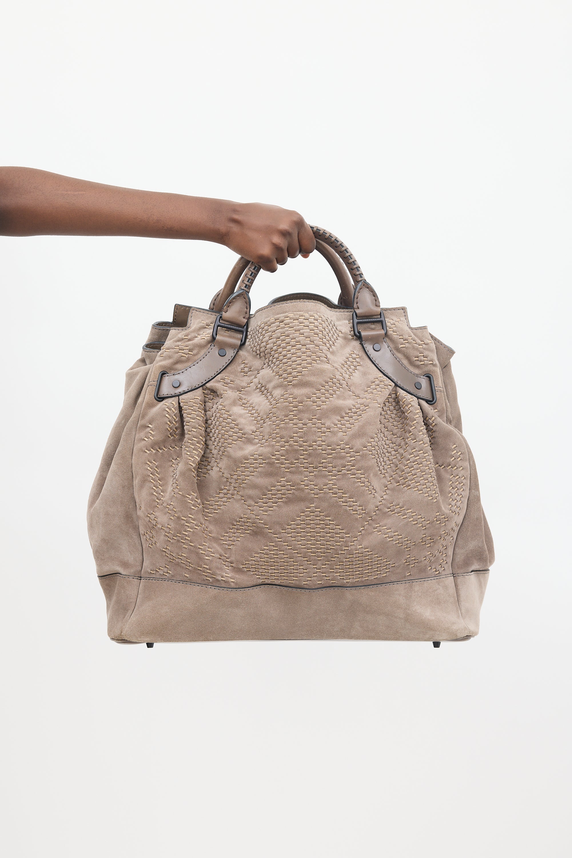 Burberry Suede Corded Check Tote Bag