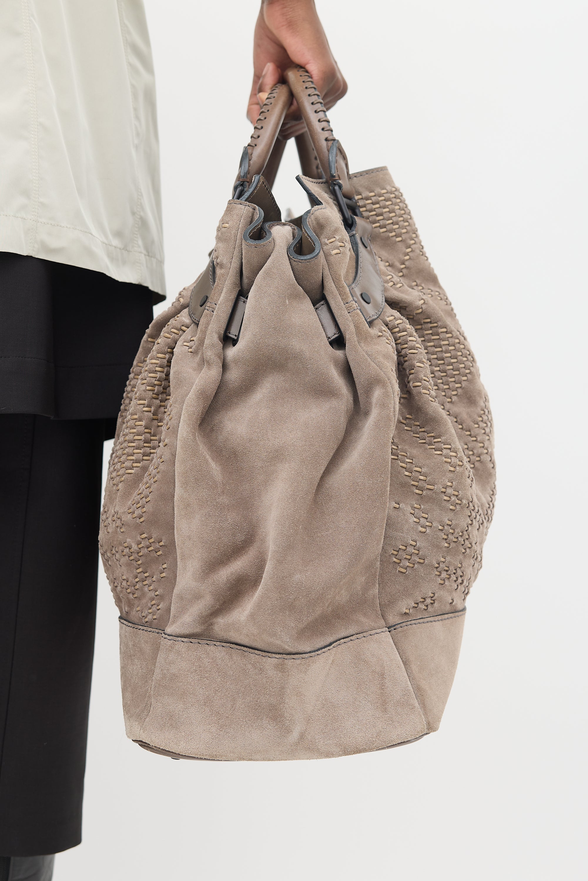 Suede Corded Check Tote Bag