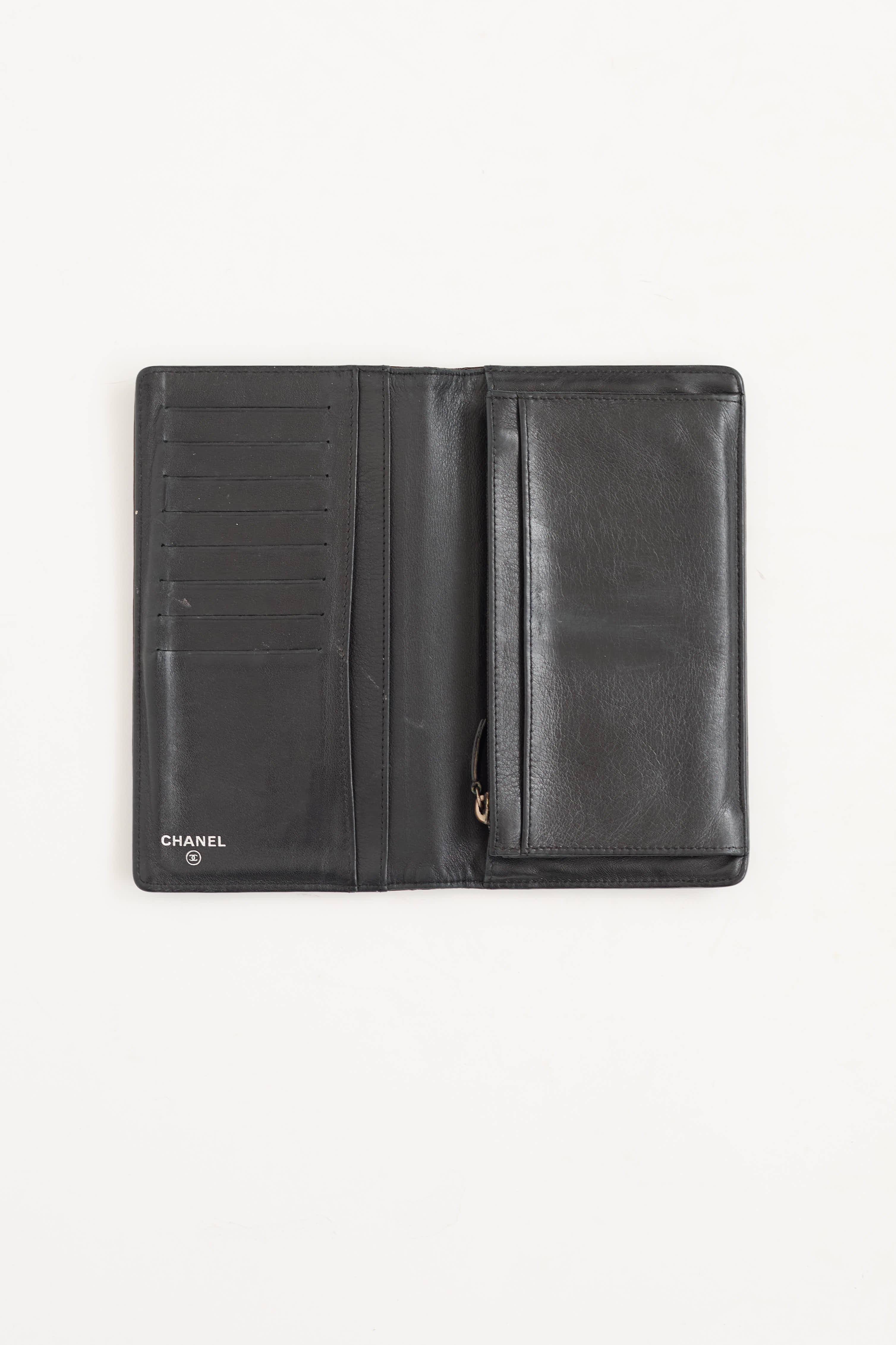 Pre-owned Chanel series 11 brown leather long bi-fold wallet featuring full grain shine leather, silver tone CC logo at front, interior has 8 card slots, 4 long bill slots and one zipper pocket. Series 11 is from 2006-2008