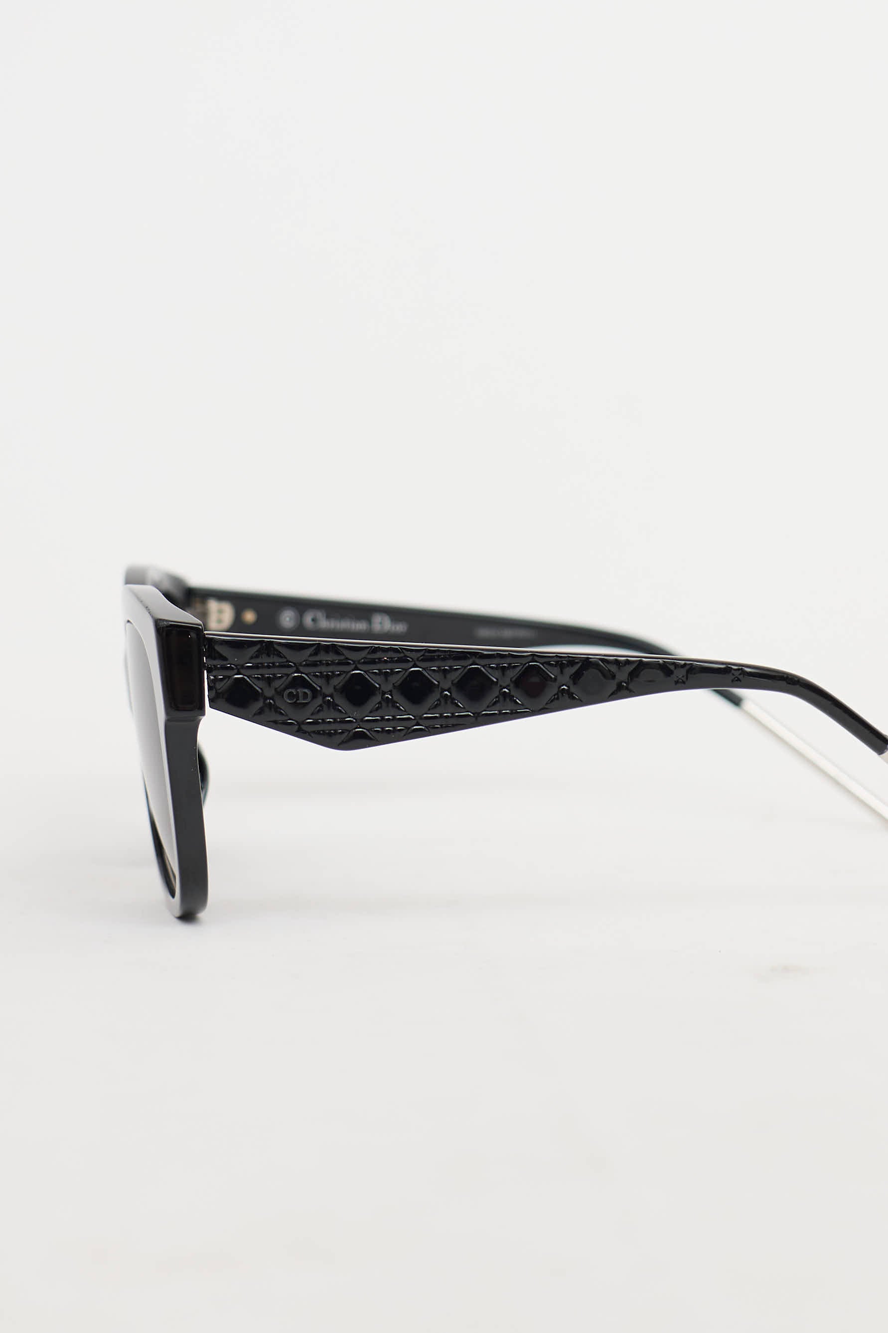 Pre-owned Dior black Very Dior 1N Sunglasses featuring black rounded square acetate frame, black tinted lenses, saddle nose bridge, and silver toned hardware at arms.