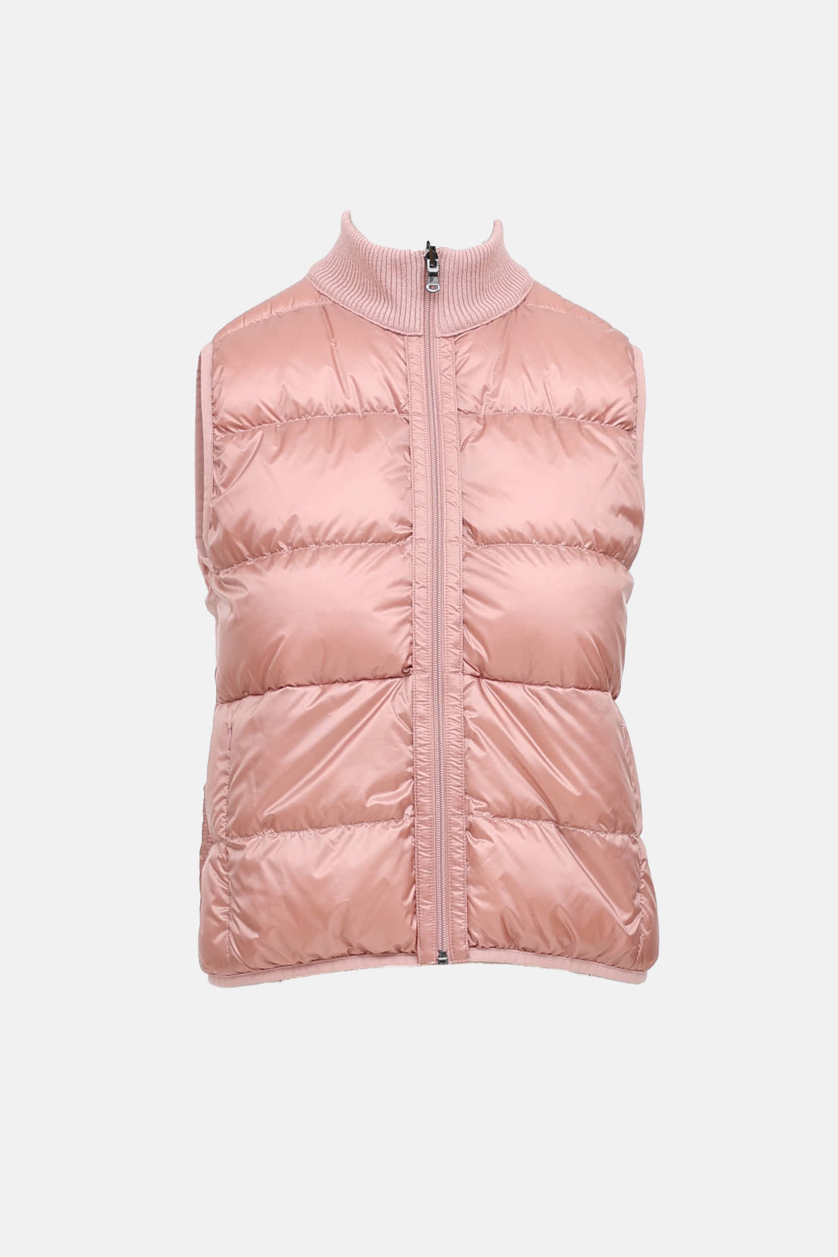 Pre-owned Falconeri pink cashmere vest featuring reversible styling, quilted upper, zipped pockets at side, and ribbed trims.