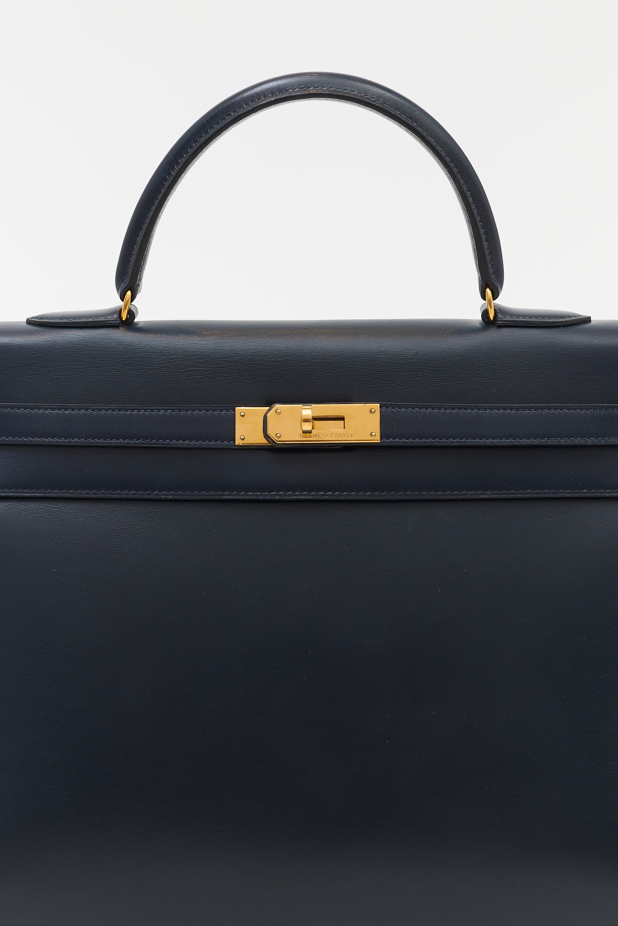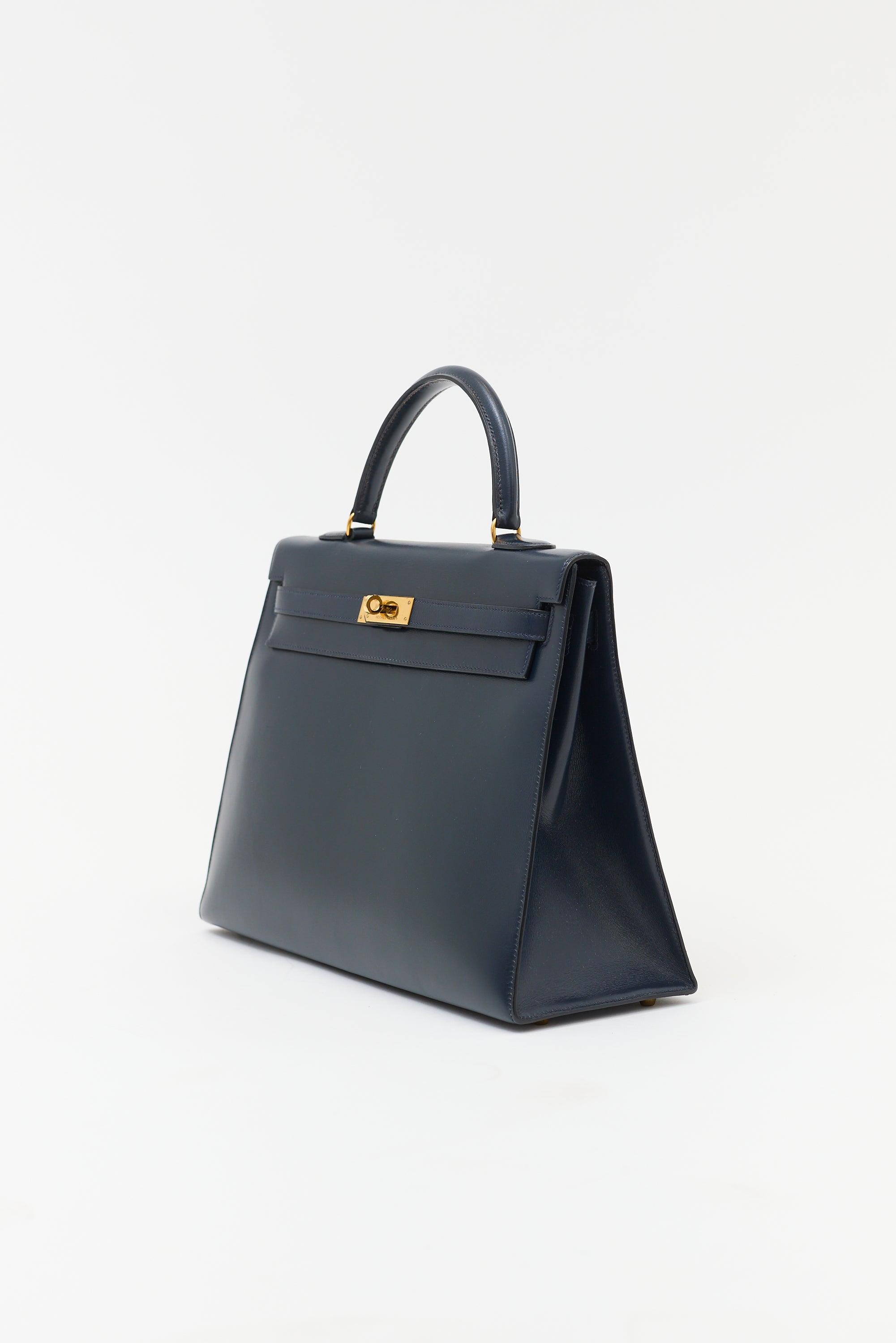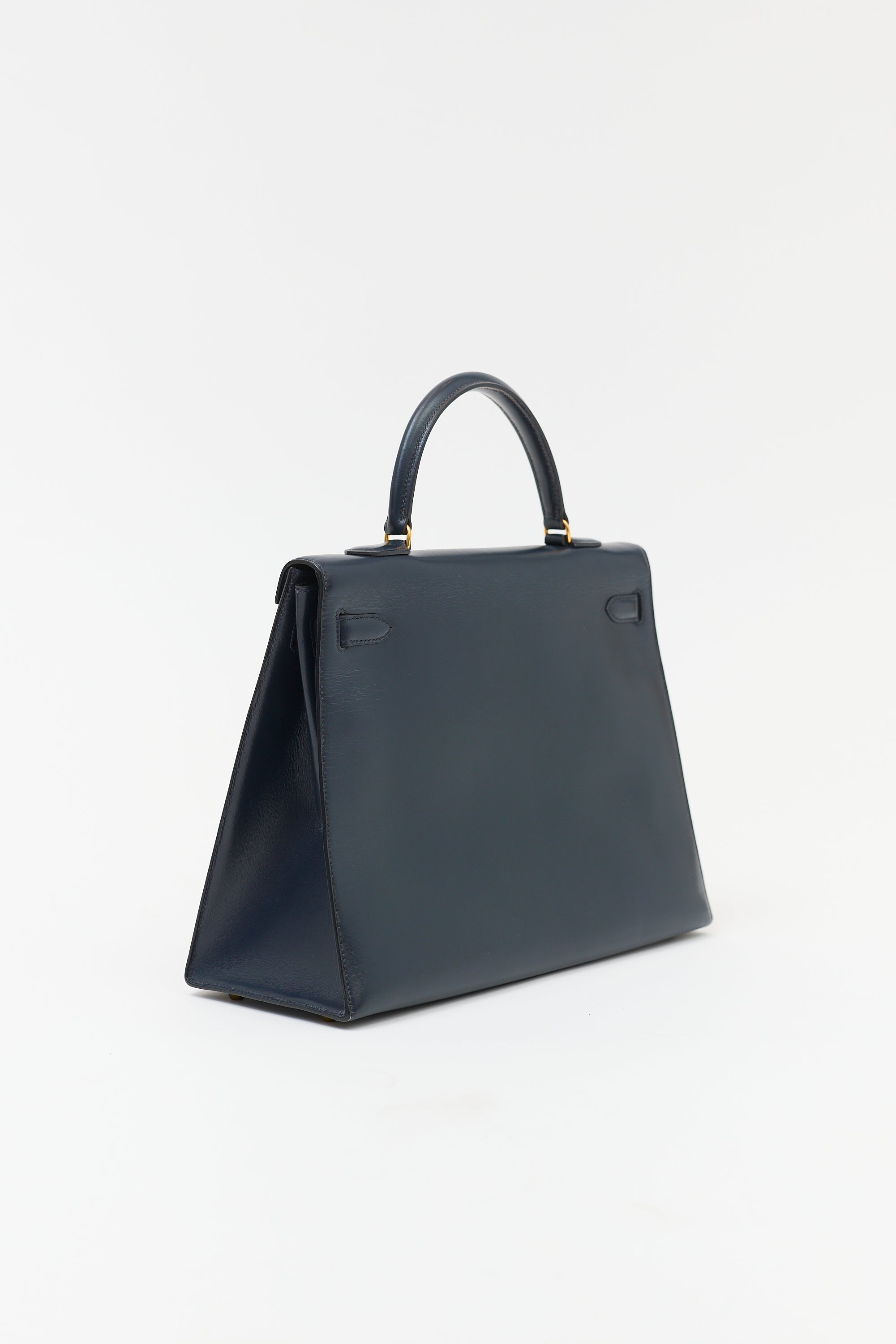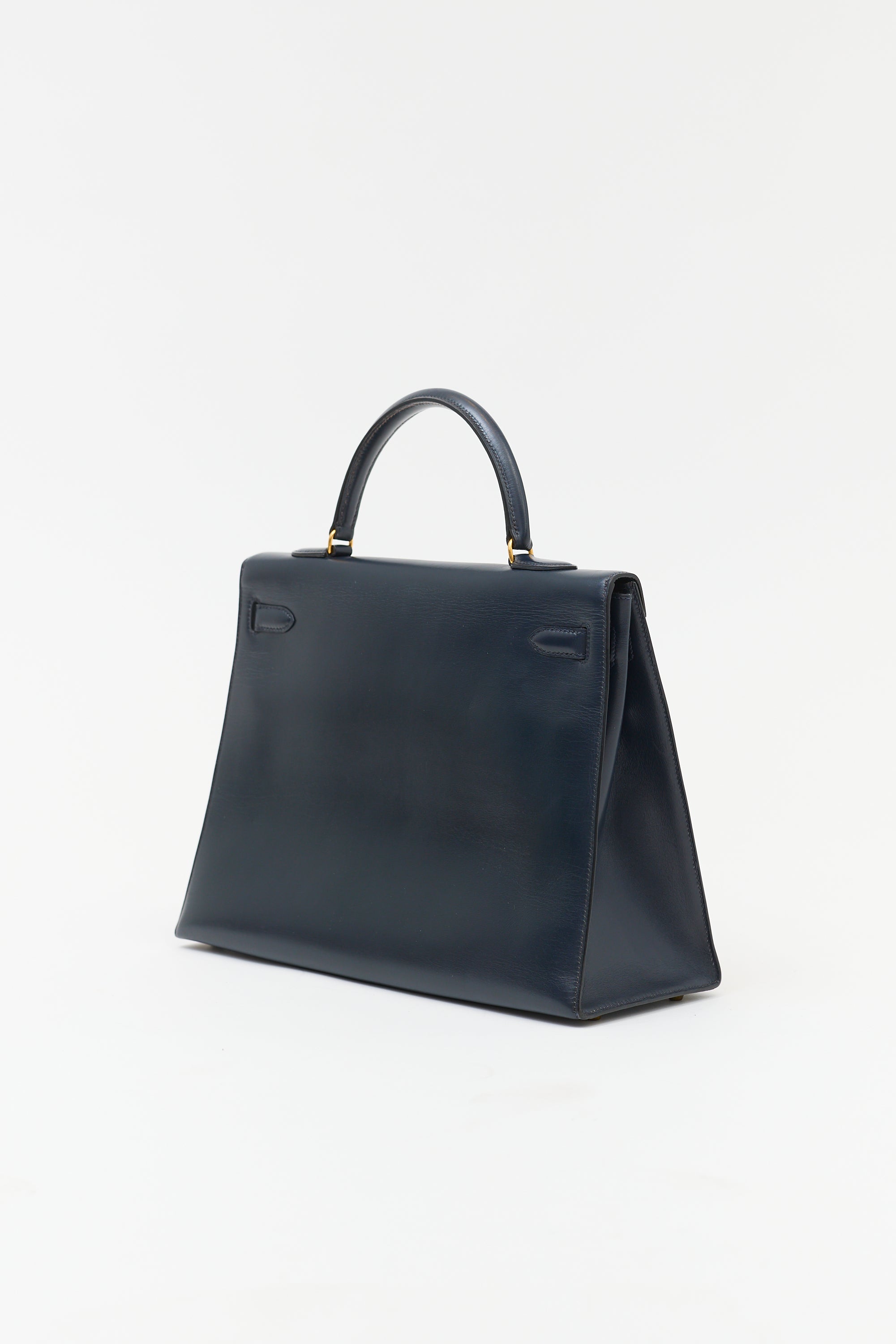 Hermès 1990 Navy Box Kelly Sellier 35 Bag