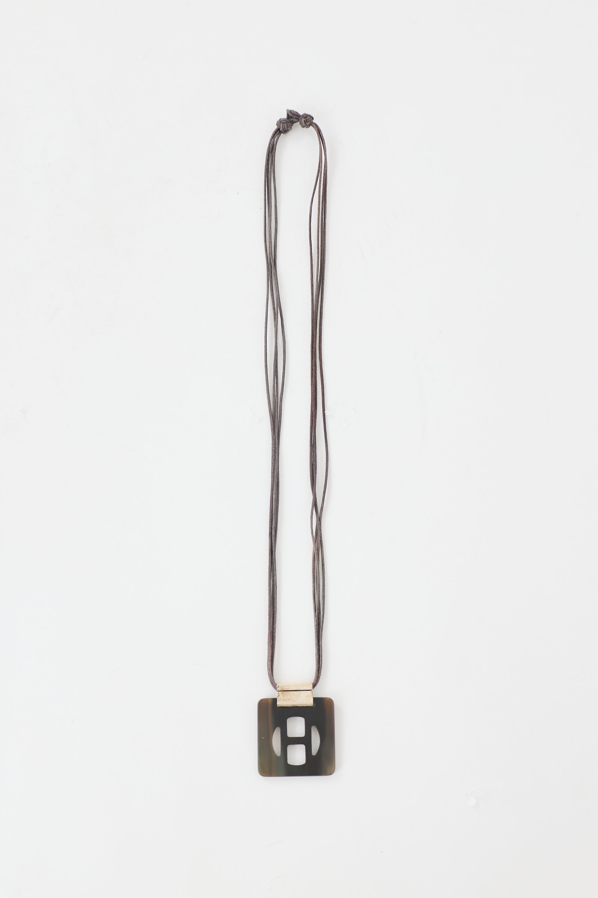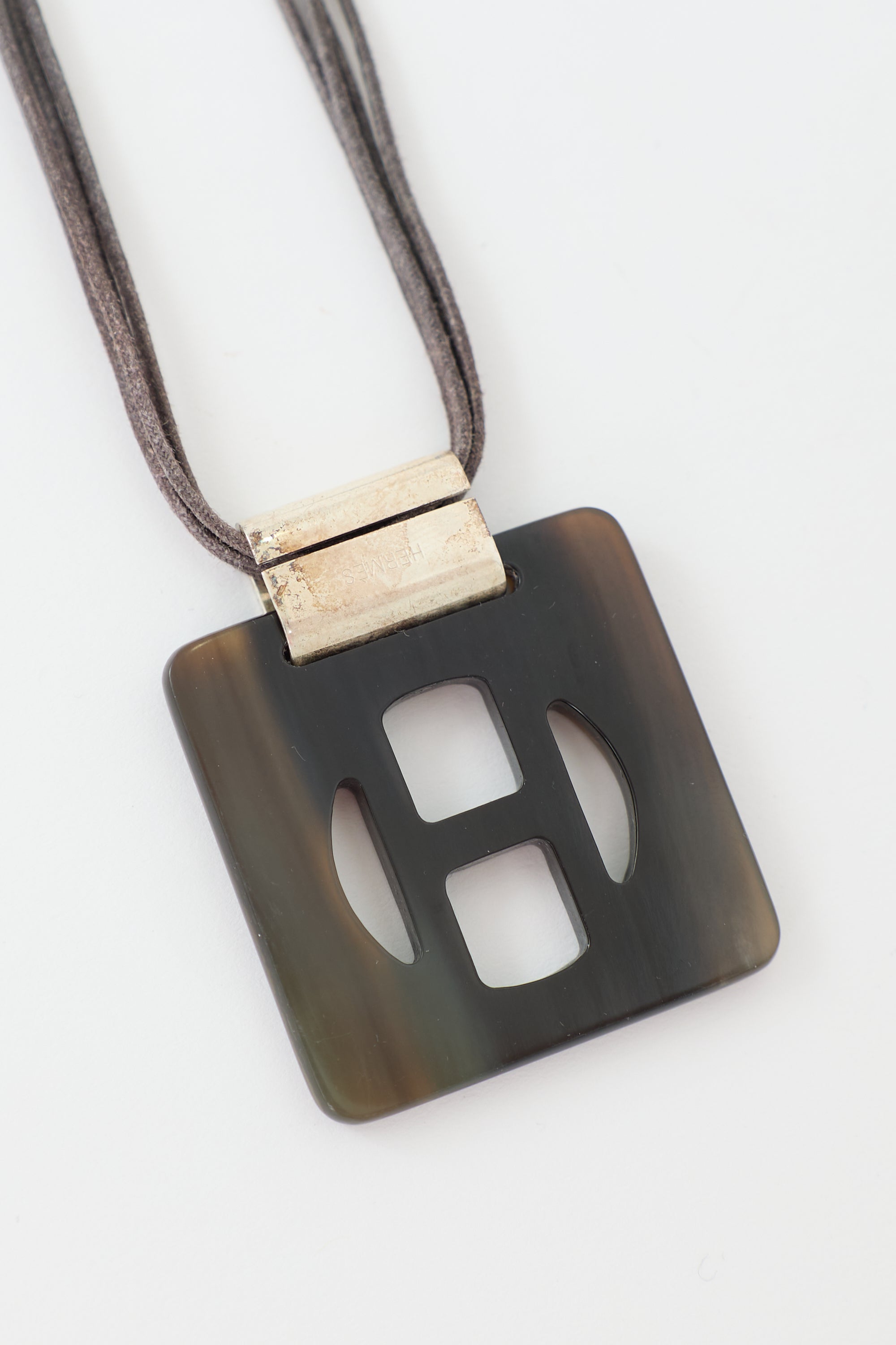 Pre-owned Hermès dark brown necklace featuring horn H charm and adjustable multi leather strands.