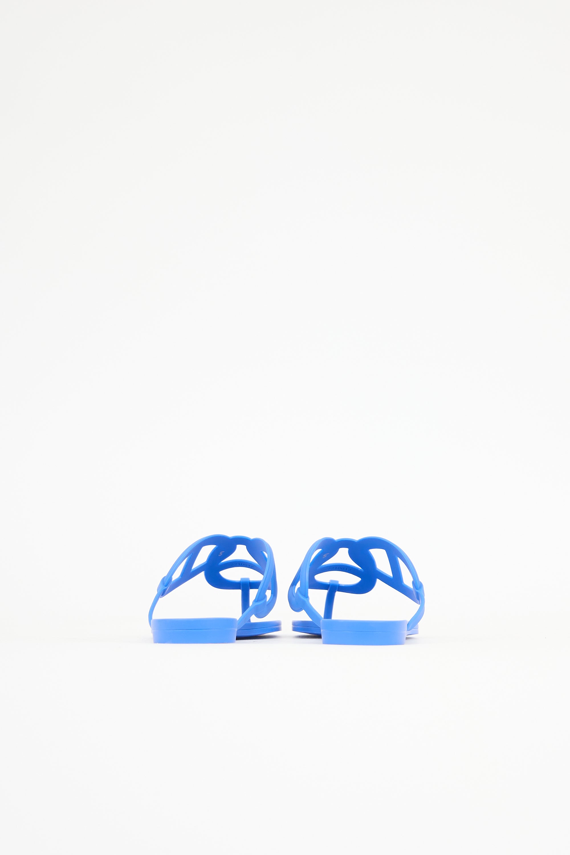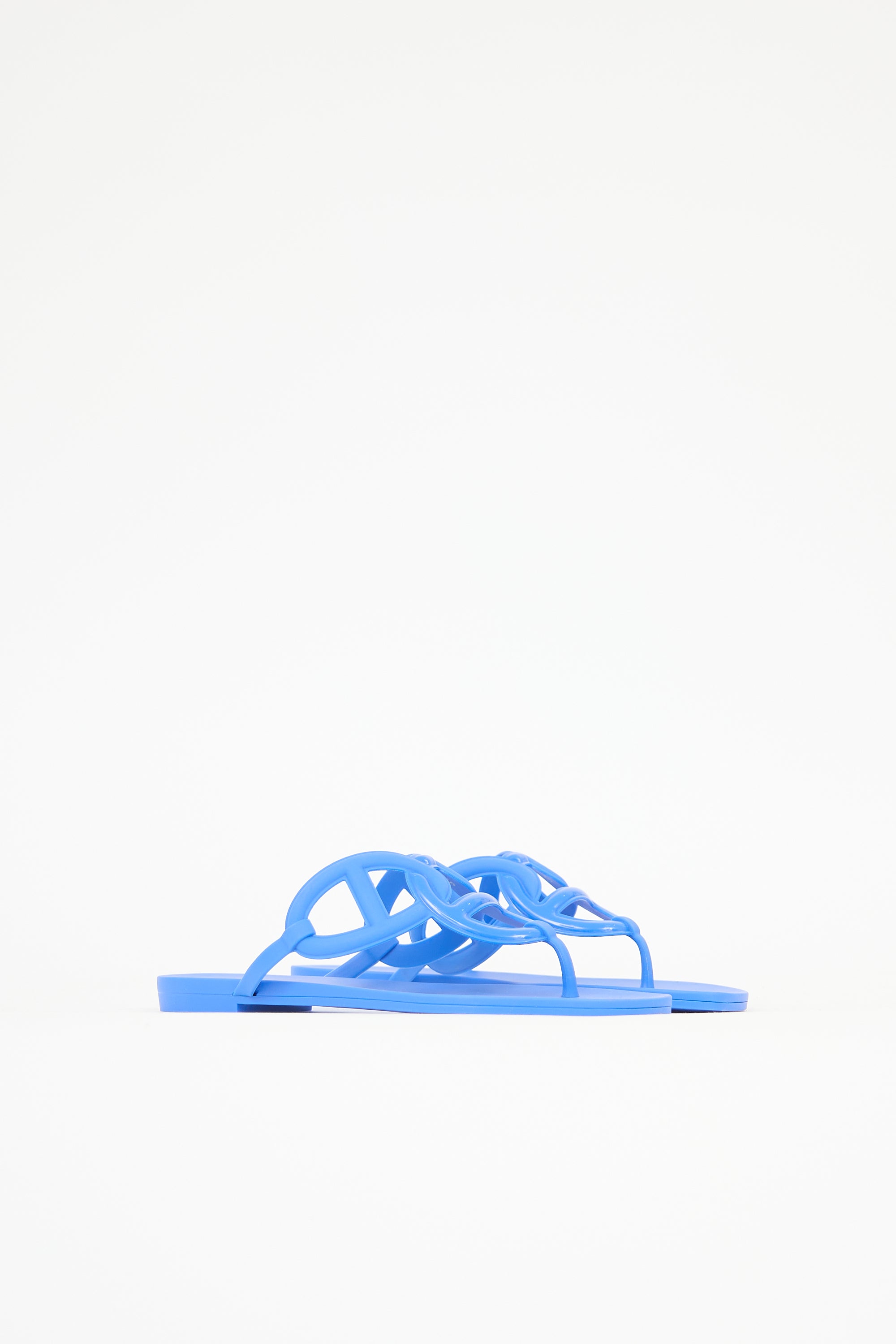 Pre-owned Hermès blue rubber Egerie sandals featuring rounded toe and Chaine d'Ancre motif strap.