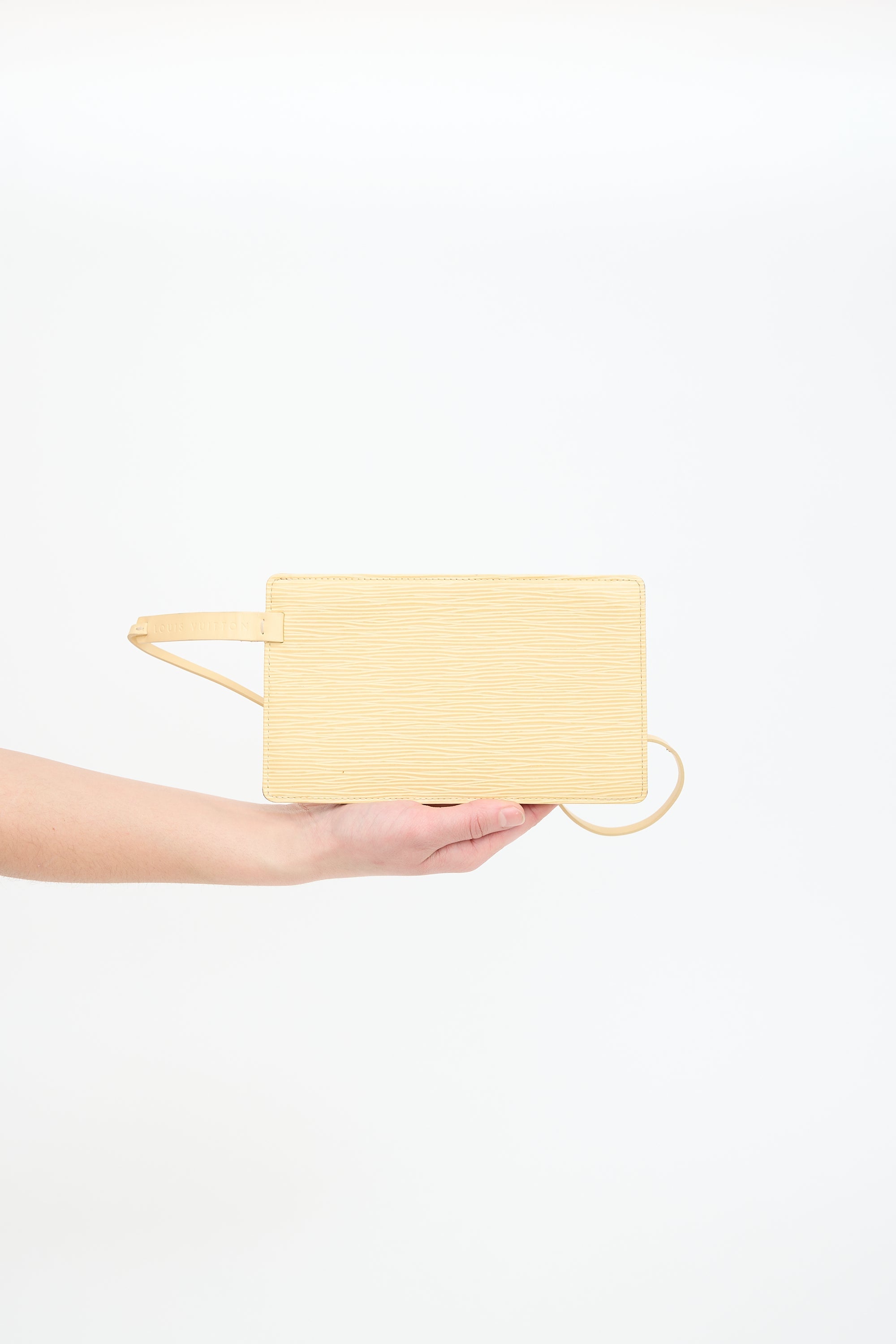 Pre-owned Louis Vuitton beige Epi leather Rochelle belt bag featuring partially detachable belt strap with buckle fastening and clasp, and one line main compartment with top zip closure.