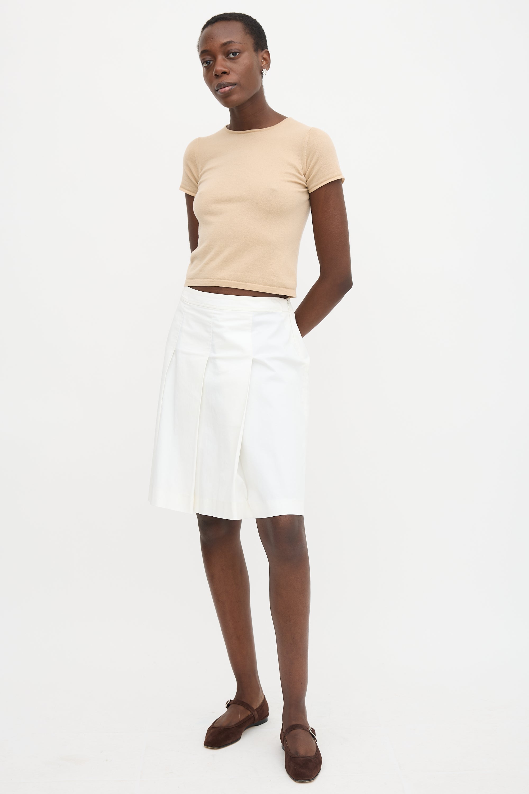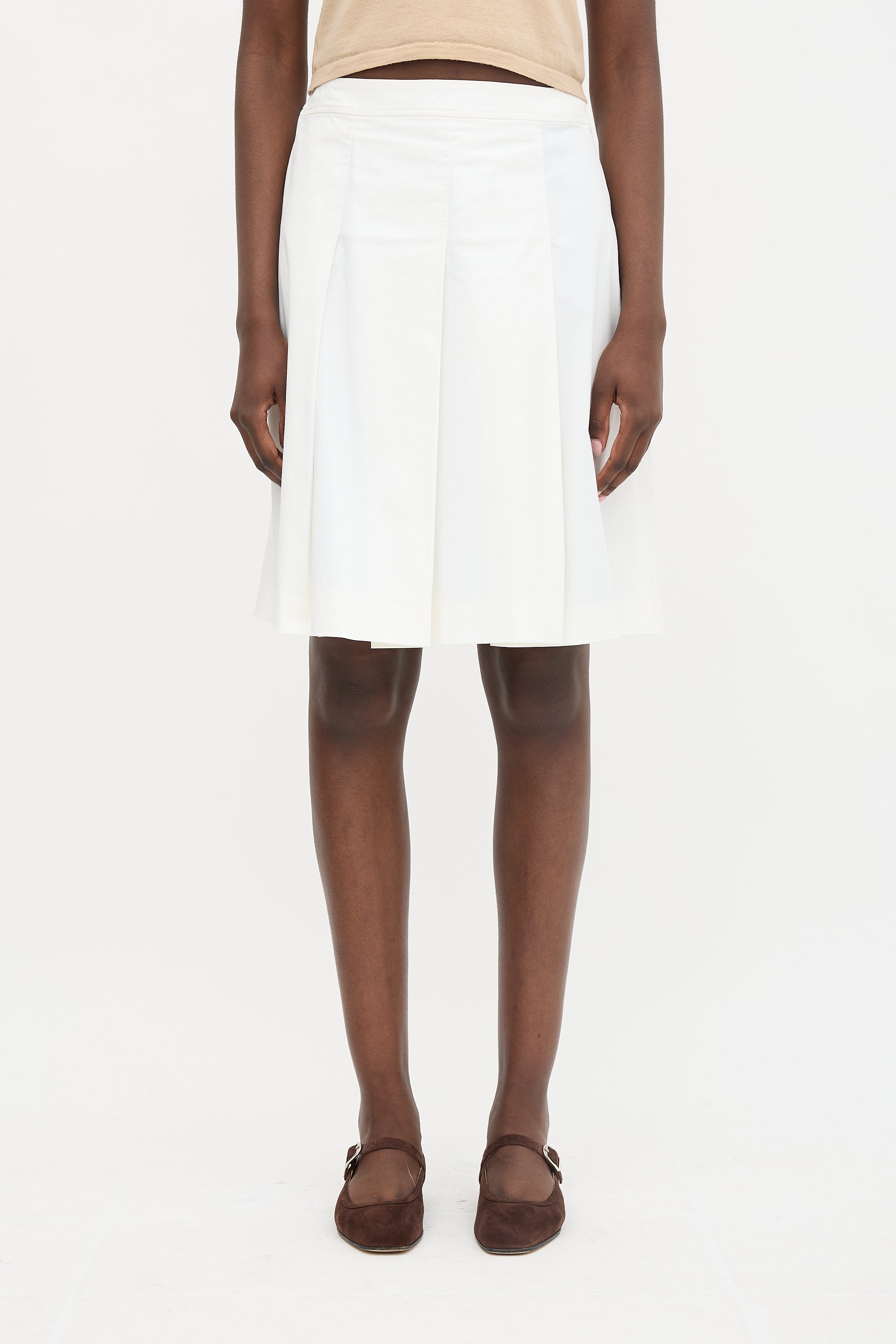 Pre-owned Miu Miu vintage white knee length skirt featuring a side zip closure and pleats throughout.