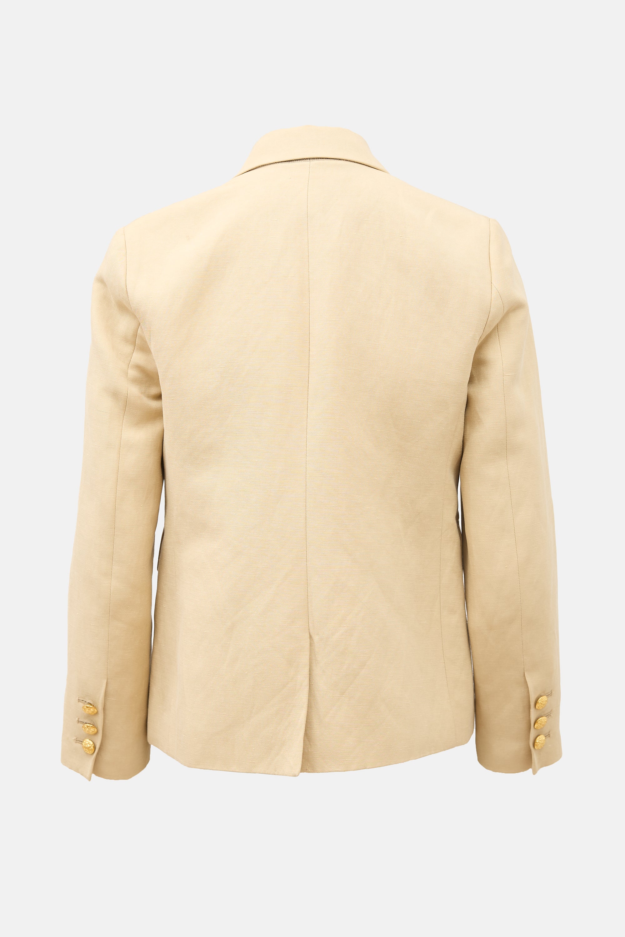 Pre-owned Nili Lotan beige linen and silk blazer featuring a peak label, padded shoulder, double breasted front, double welt pockets, and back vent. Lined.