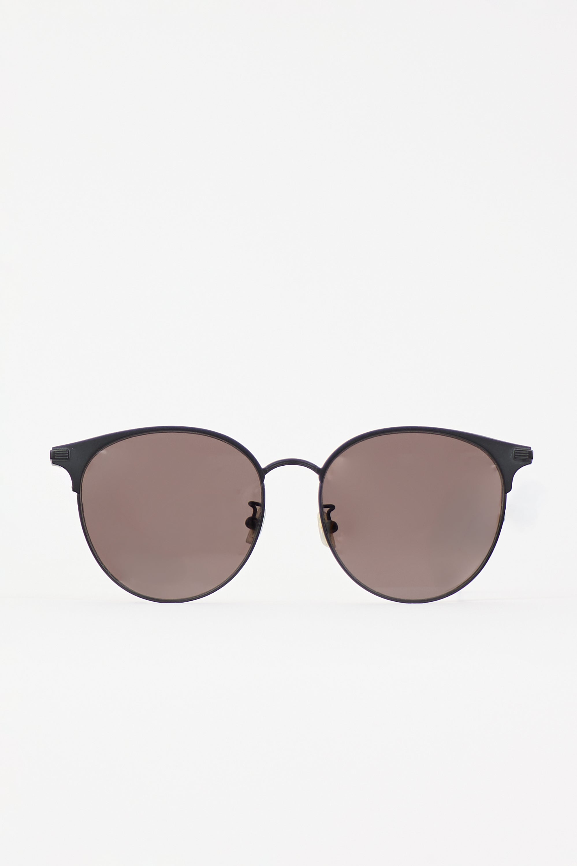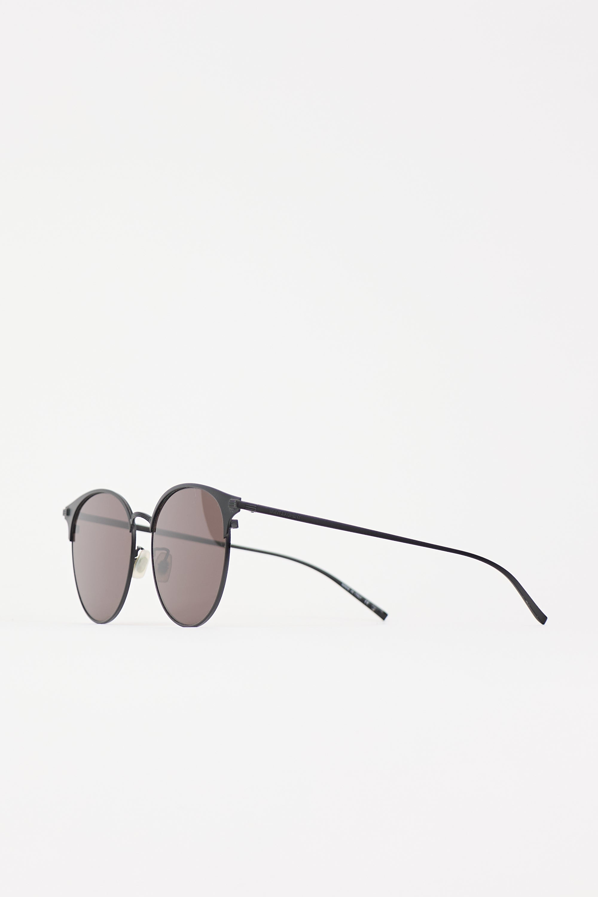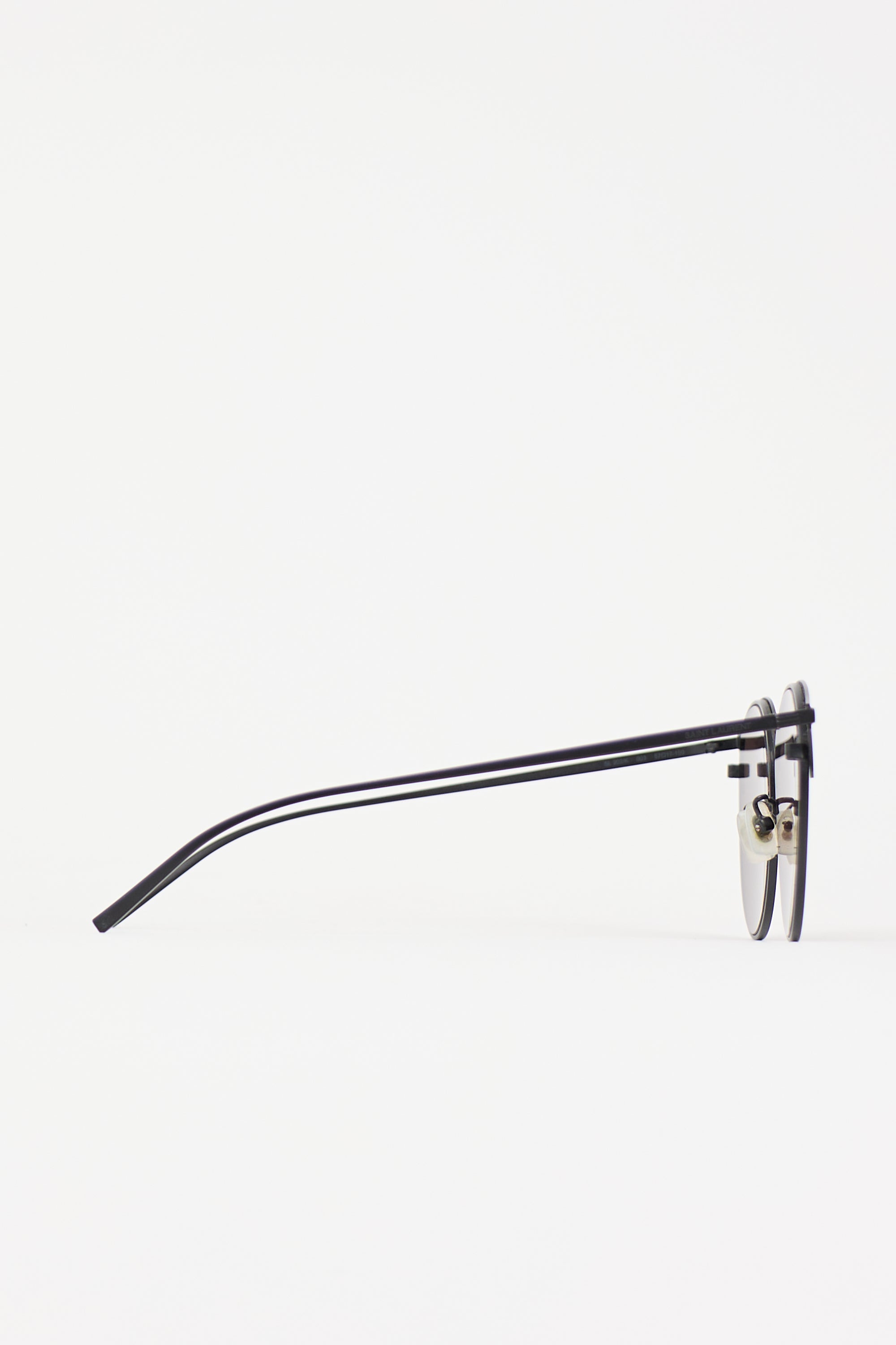 Pre-owned Saint Laurent black SL202K metal sunglasses featuring square lens, nose pads, and thin metal arm. Includes original case.