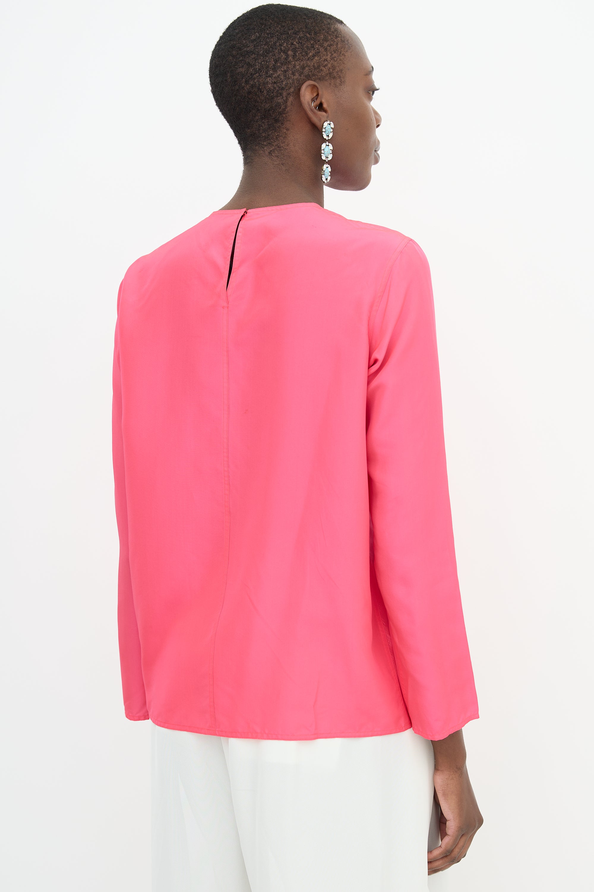 Pre-owned Sofie D'Hoore pink silk blouse featuring round neckline and keyhole back with single snap fastening.