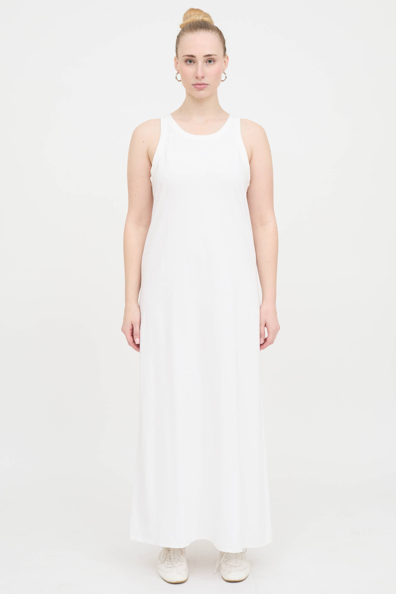 Pre-owned The Row white dress featuring round neckline and sleevless styling.