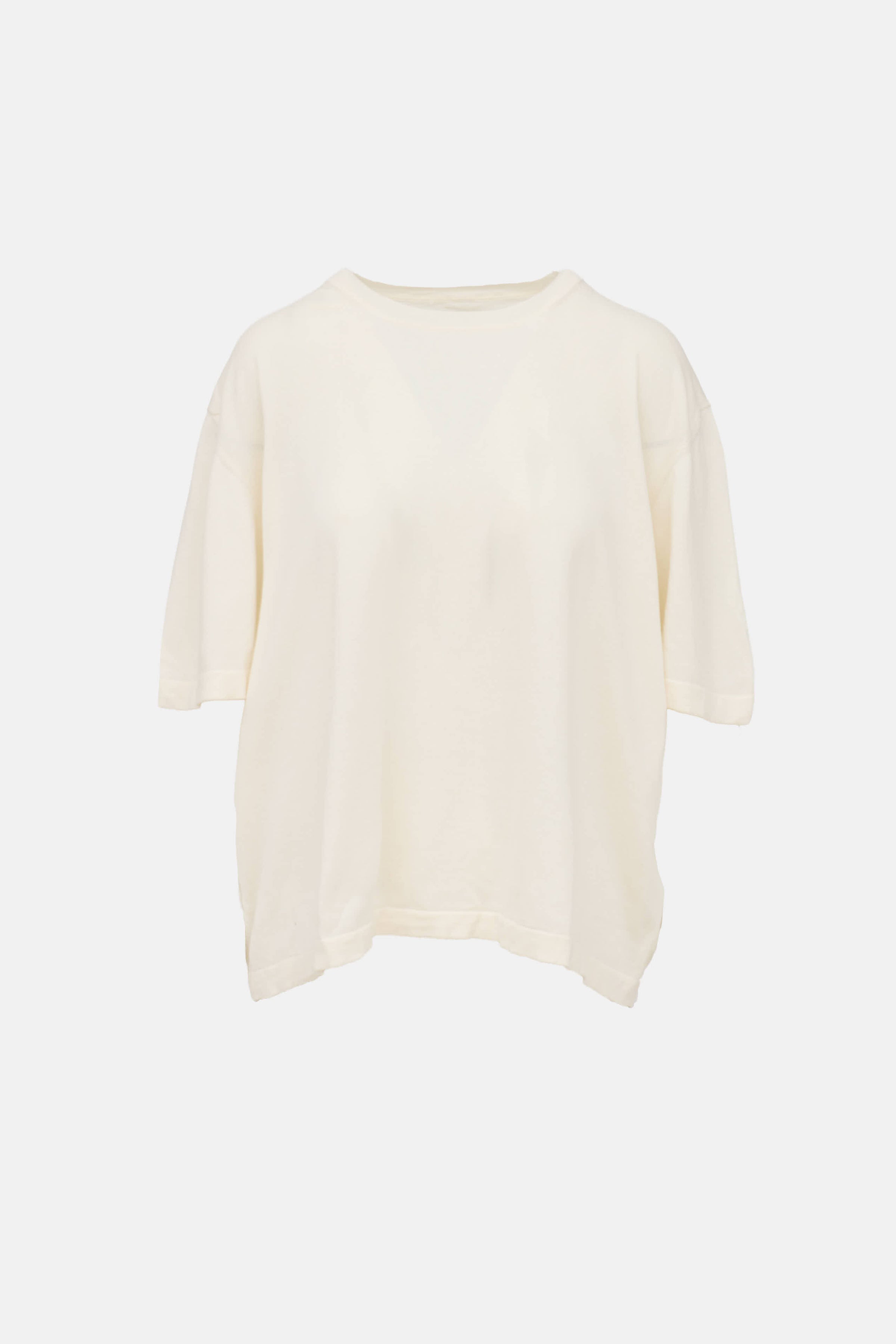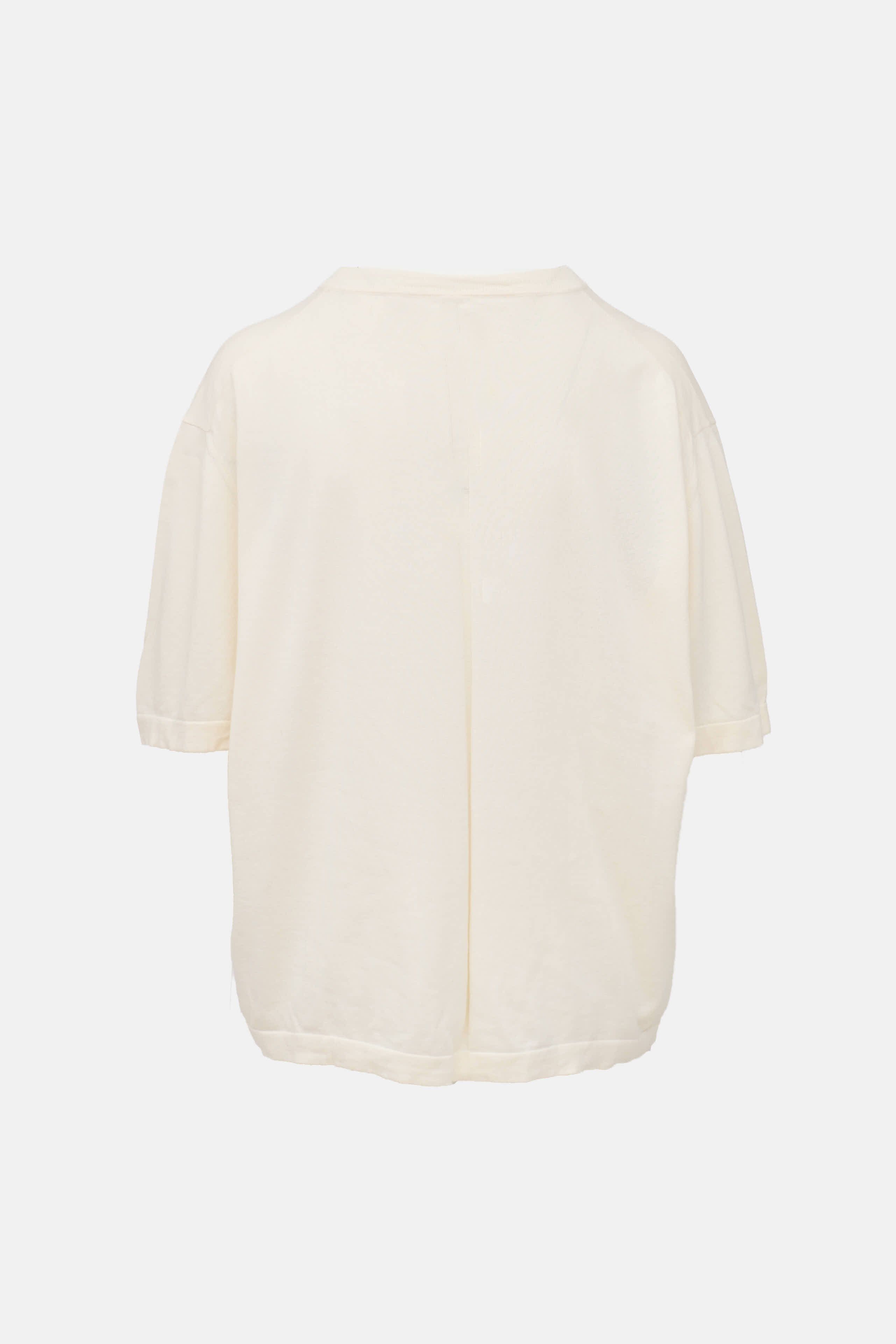 Pre-owned The Row cream short sleeve t-shirt featuring round neckline, ribbed knit collar, and dropped shoulder.