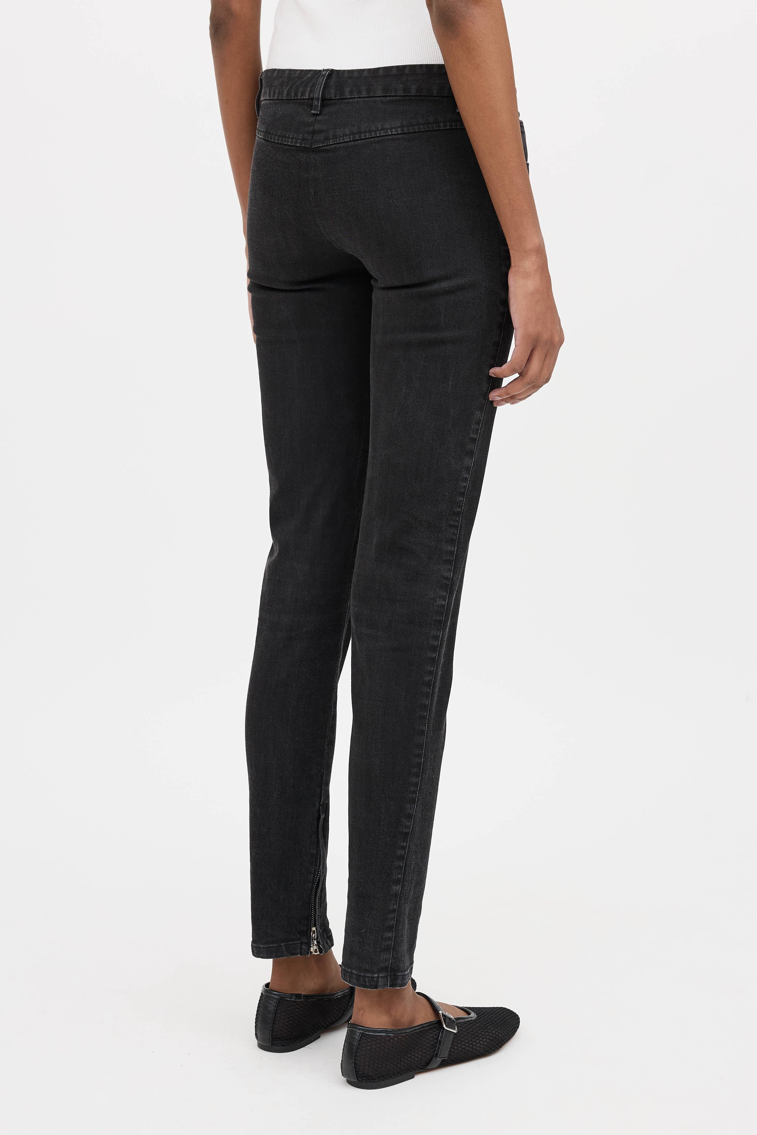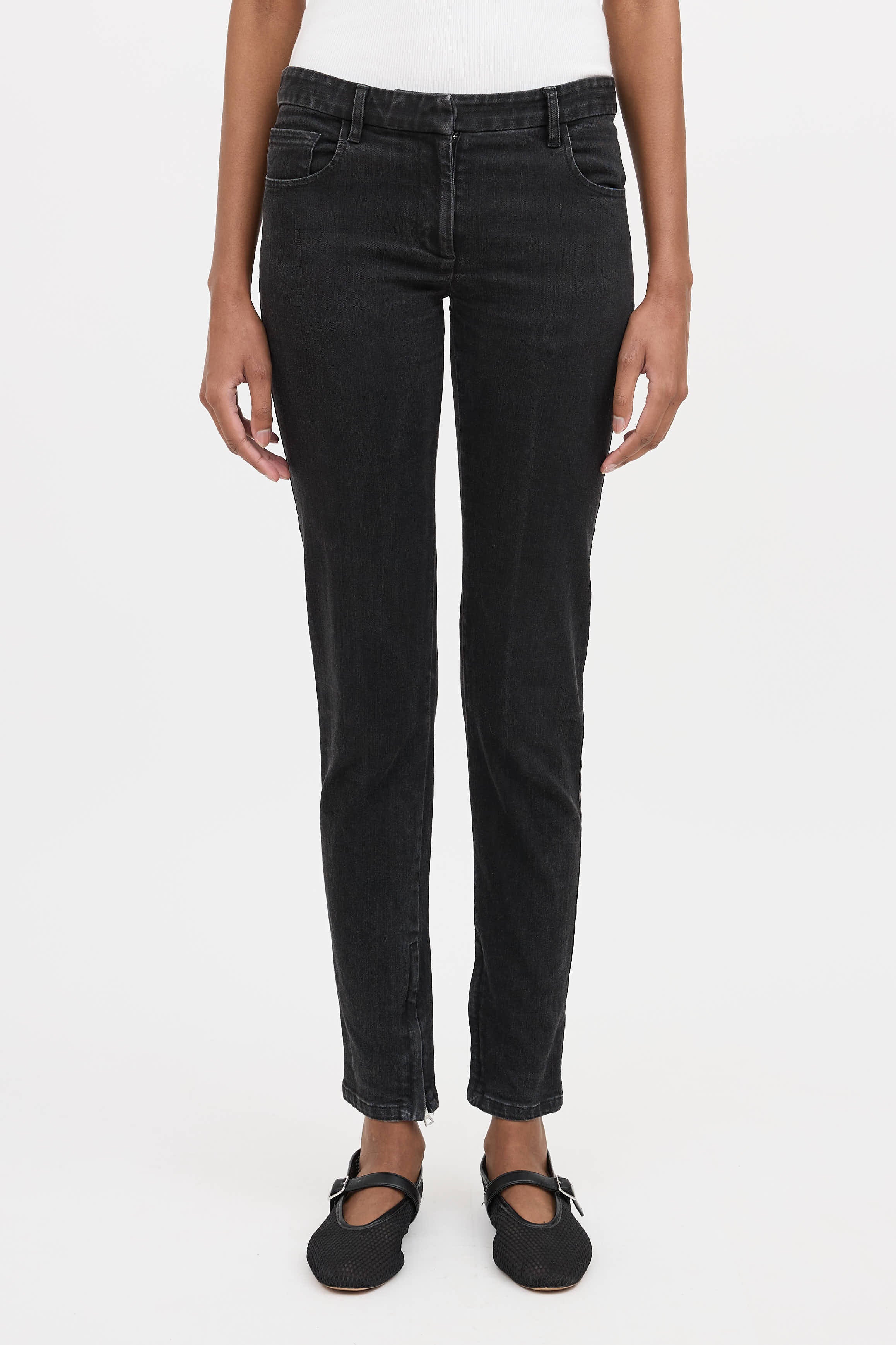 Pre-owned The Row black skinny jeans featuring concealed zip fly, belt loops, pockets at front, and zip detail at hem.