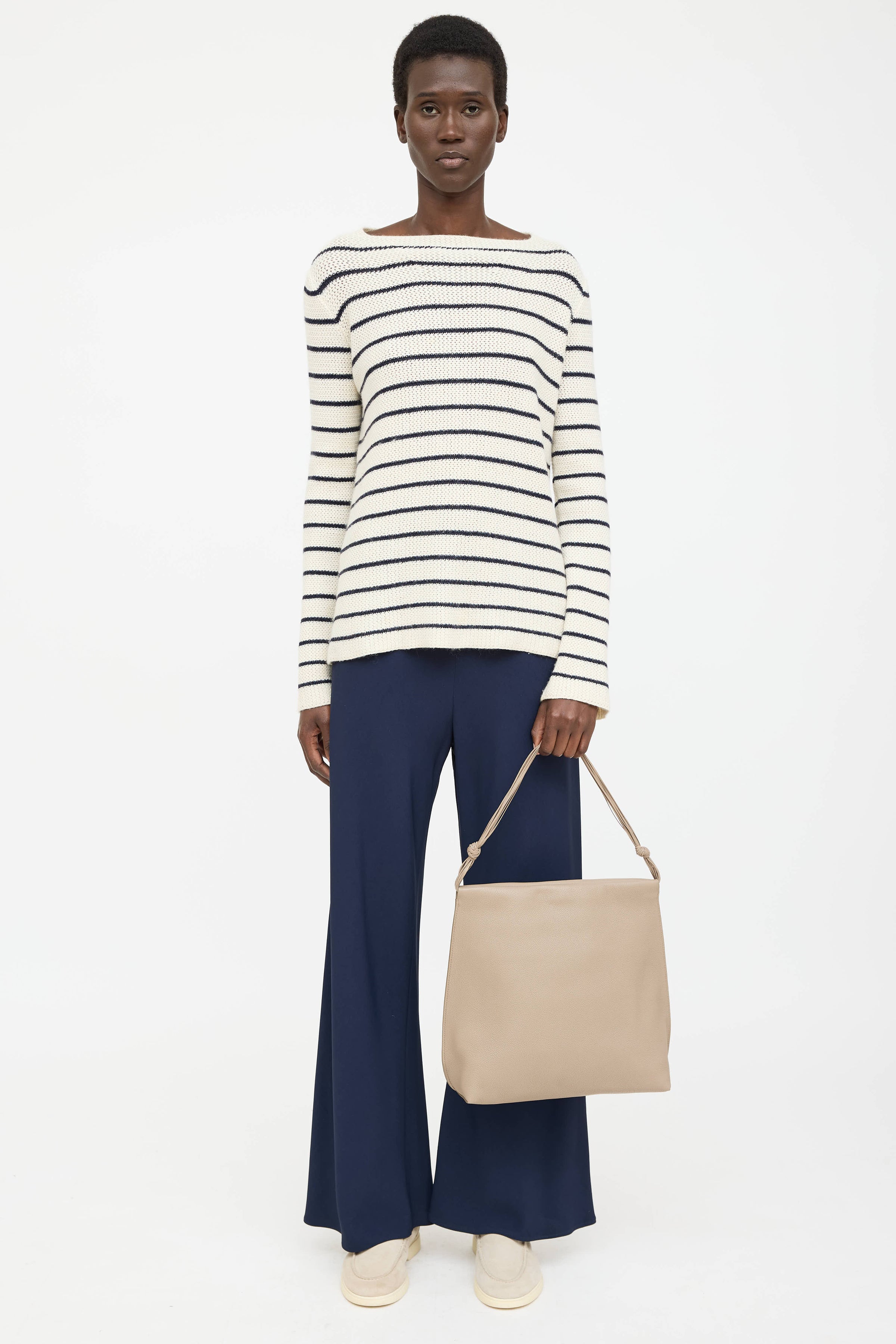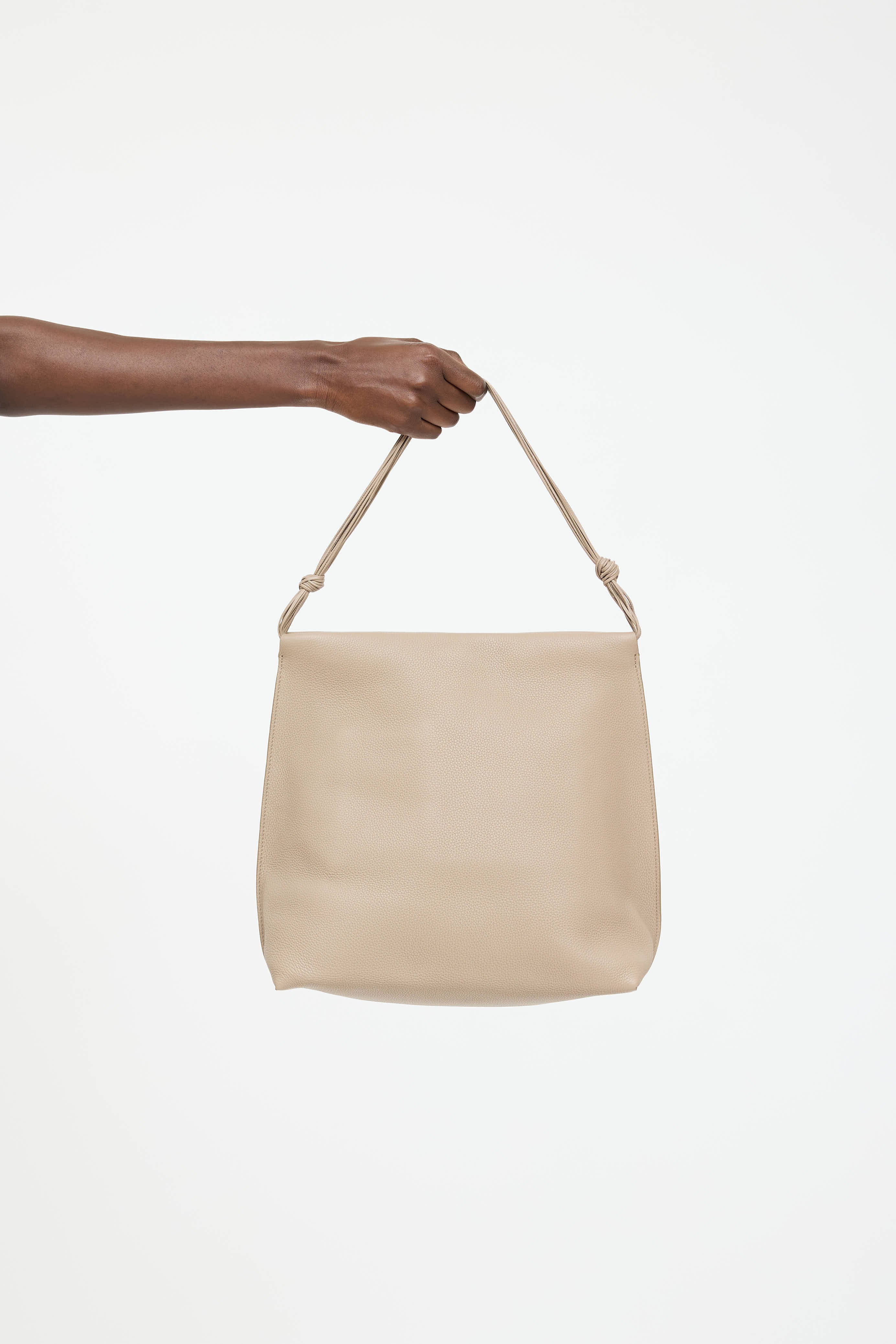 Pre-owned The Row stone Wander shoulder bag featuring knotted leather handle, top zip closure, one main compartment, one zip pocket, and two slip pockets.
